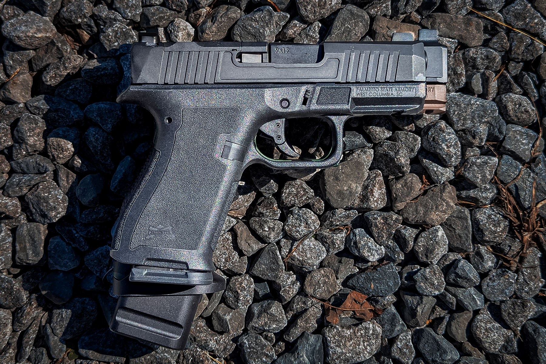 The slide, which is finished in black Cerakote, has what Palmetto State Armory refers to as Extreme Carry Cuts, which gives it smoother angled edges on the front and rear for snag-free draws and effortless re-holstering. These smooth edges are complemented by front and rear slide serrations so that you can effortlessly rack the gun under any conditions while still maintaining the smoothness provided by the carry cuts.