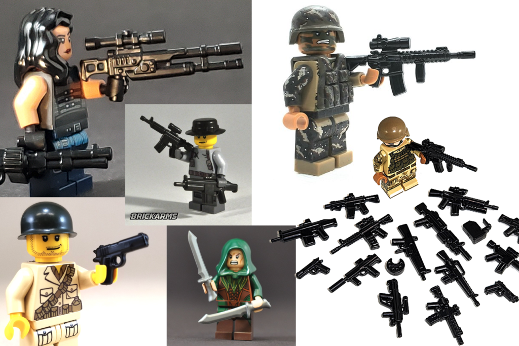 First, go here to Brick Arms. Once you arrive, you’ll find a vast collection of LEGO-ready weapons and accessories, weapons packs, and custom minifigs that are prized by collectors worldwide. For the best value, check out Brick Arms weapon theme packs