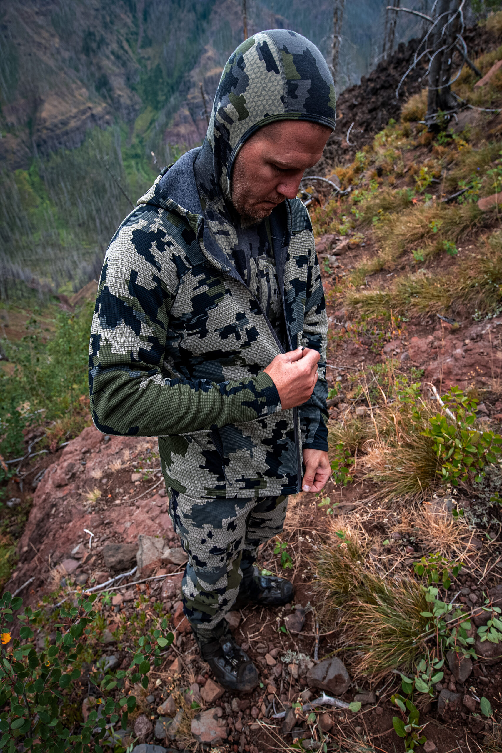 KUIU has some suggestions for making sure hunters’ layering systems fit and do their job. First, do layer an outer-layer fitted item over mid-layer fit item. A base layer, mid-layer fleece, mid-layer insulated jacket and an outer-layer fit rain jacket, all in the same size, will comfortably layer together. Also, be sure to upsize your soft-shell jackets if you plan to add multiple mid layers underneath.