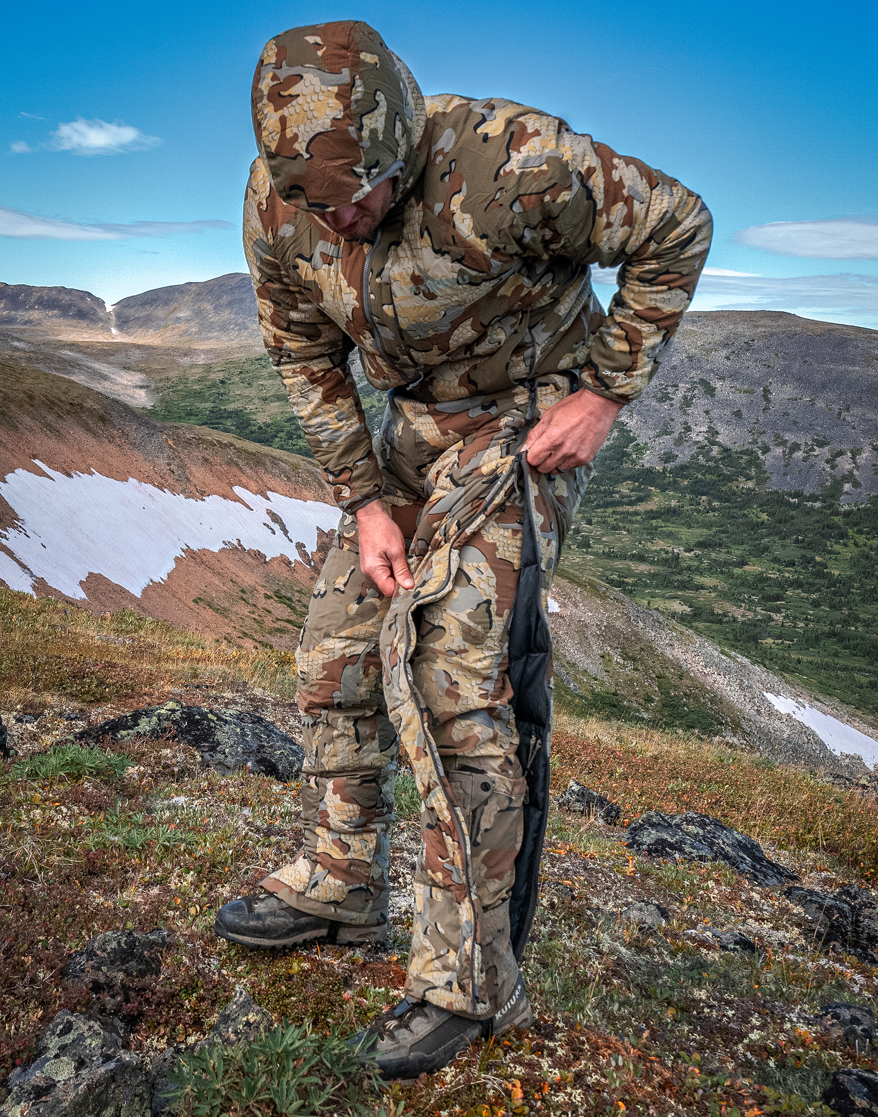 A good pants combination could be the PRO Merino 200 Zip-Off Bottom base layer, with the Kenai Pant insulated mid layer and KUIU Kutana Gale Force pants as an outer layer to ward off the elements.