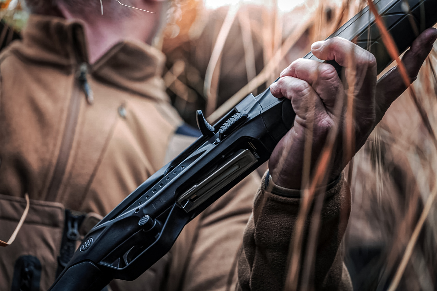 a hunter resting the Beretta AX800 shotgun on his shoulder