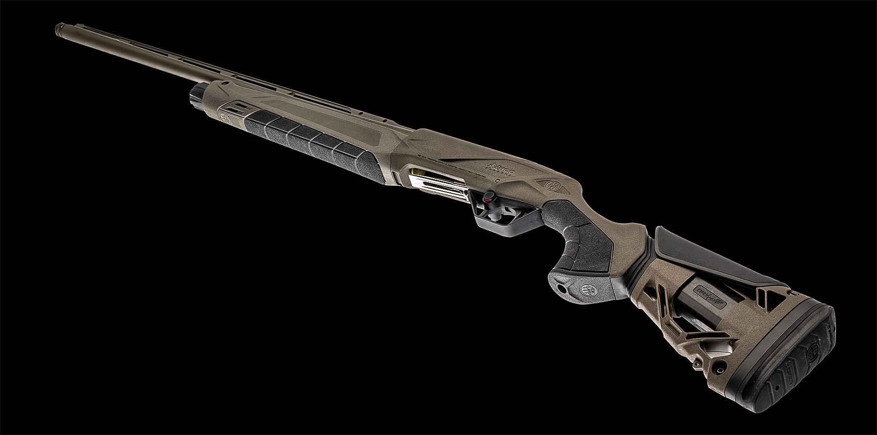 • Steelium Pro barrel with a 17.7-inch triple forcing cone for tighter patterns, less recoil, and top-tier accuracy.